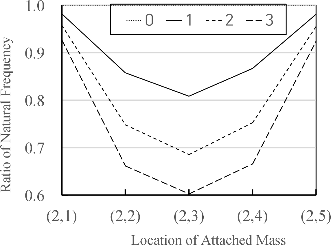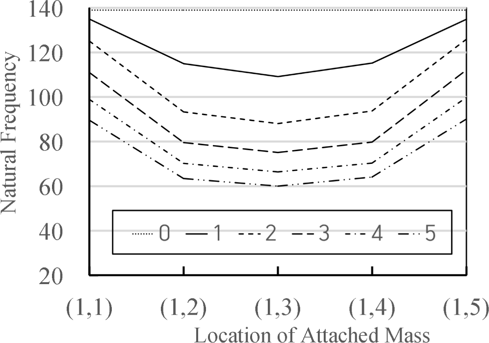 이와 같이 여러 곳에 첨가질량이 존재하는 경우 비교적 간단한 방법으로 고유진동수를 계산할 수 있다. 복합재료 구조물을 포함하여 불규칙한 단면과 이상적인