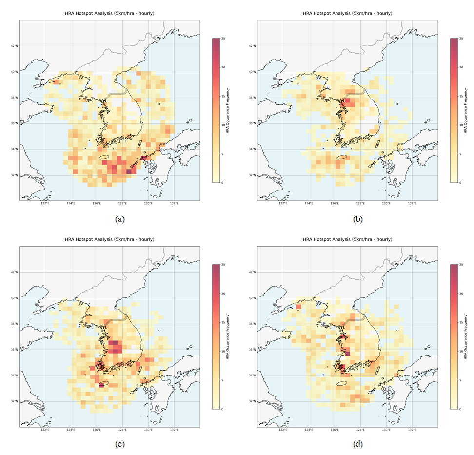 누적 강수량, 중첩 비율과 같은 식별 기준을 통해 간접적으로 이러한 물리적 특성을 고려할 수 있다. 이러한 측면에서 식별된 HRAs를 상세한 형태적