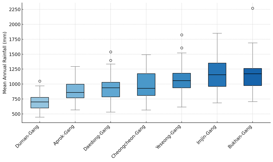 분석되었으며, 이는 북한 서쪽에 위치하는 유역의 기후적 불안정성과 집중호우 및 홍수 위험성을 시사한다.
