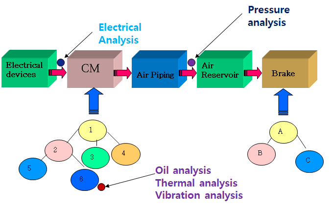 불필요한 정비를 줄이고, 장비의 가동 시간을 최대화하는 데 중점을 둔다(Tsang, 1995). 이는 특히 고도의 기술이 요구되는 철도분야에서 신뢰성 및 효율성을 극대화하는 데 큰 기여를 한다. 본 연구는 주공기 압축기의 상태기반 정비를 위해서,