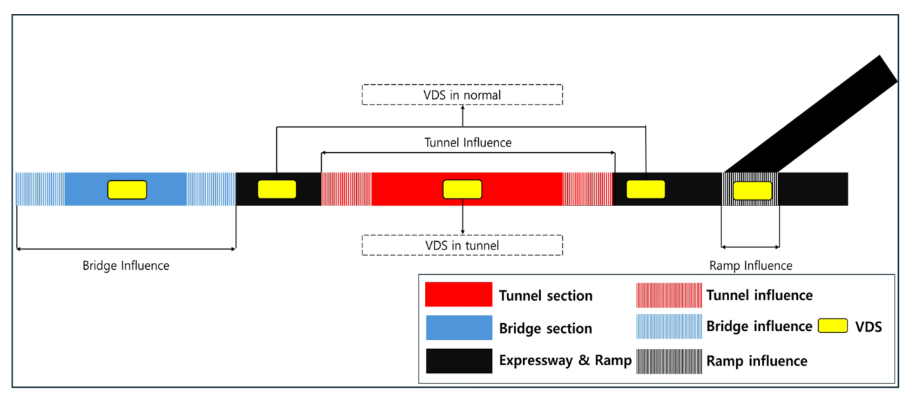 한편, 본 연구에서 활용한 차량검지기(VDS) 자료는 지점 단위의 집계 자료이므로 개별 차량의 주행 궤적과 같은 미시적 주행 행태를 직접 분석하는 데에는 한계가 있다. 이러한 자료적 특성으로 인해 개별 관측치의 미세한 변동성을 설명하기보다는, 구조적으로 유사한 터널들을 군집화한 후 군집 단위에서 교통 성능 특성을 분석하는 거시적 접근 전략을 채택하였다. 이러한 접급은 VDS 자료의 태생적 제약을 고려하여 구조적 요인의 영향을 보다 안정적으로 식별하기 위한 방법론적 선택이다.