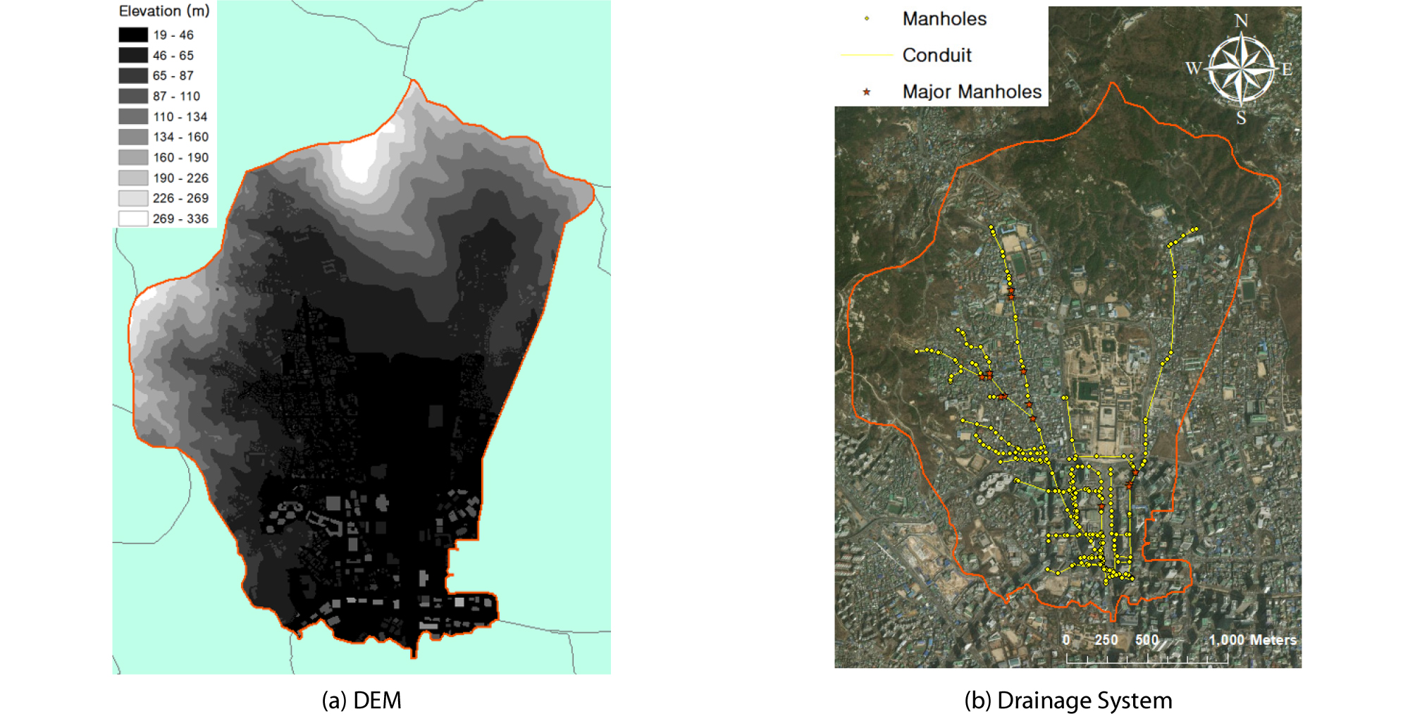 본 연구에서 대상 유역의 1차원 도시 유출량을 계산한 SWMM은 도시유역이나 인위적인 배수계통을 갖는 유역에서 강우사상으로 인해 발생하는 지표면 및