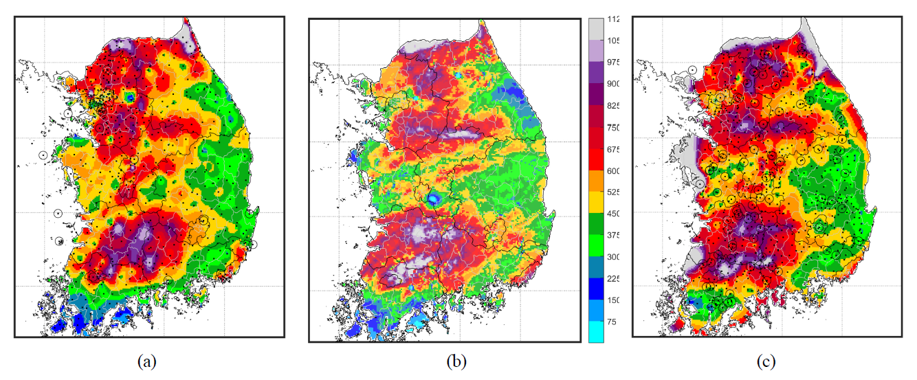 mm, 1.0 mm) 강수량 관측의 민감도 실험을 실시하였다. 연구 결과는 다음과 같다.