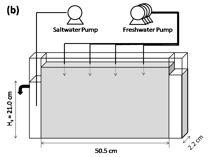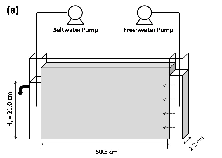 두 실험 모두 동일한 수조(50.5 cm × 28 cm × 2.2 cm)에서 수행되었는데 비교적 폭이 좁은 수조를 사용하여 비피압 대수층 내 단면