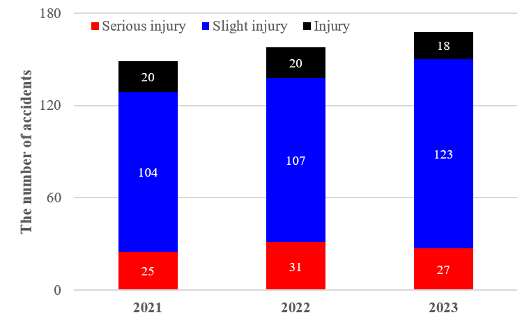 개인형 이동장치 사고원인 분석 및 예측 모델 분석을 위해서 본 연구에서는 샘플 수를 고려하여 훈련 및 시험 모델을 9:1, 8:2, 7:3, 6:4,
