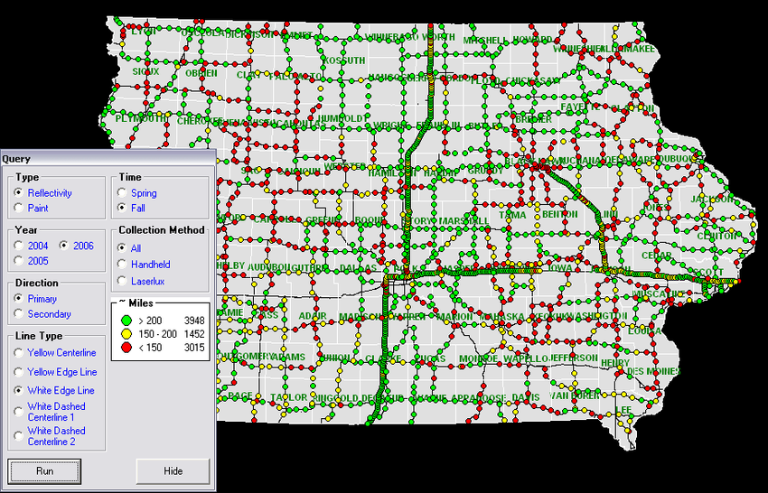 주도로 Pavement Marking Management Tool(PMMT)을 개발 및 운영하고 있다. 아이오와주 DOT는 휘도계 장비를 장착한 차량을
